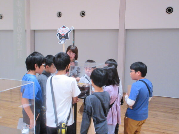 アトリアでは、児童生徒のみなさんに美術作品との充実した出会いを体験してもらえるよう、来館した際の活動をスタッフが支援しています。その一つである学習鑑賞会は、みなさんと30分ほど展示室をまわり、トークをしながら鑑賞します。コミュニケーションを重視した作品鑑賞を通じて、主体的で深い学びを育みます。